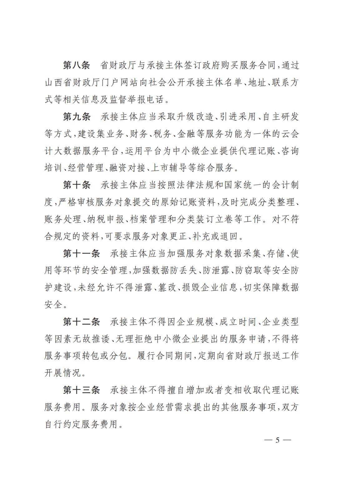 關于印發(fā)《山西省財政廳為中小微企業(yè)購買代理記賬服務實施細則(試行)》的通知